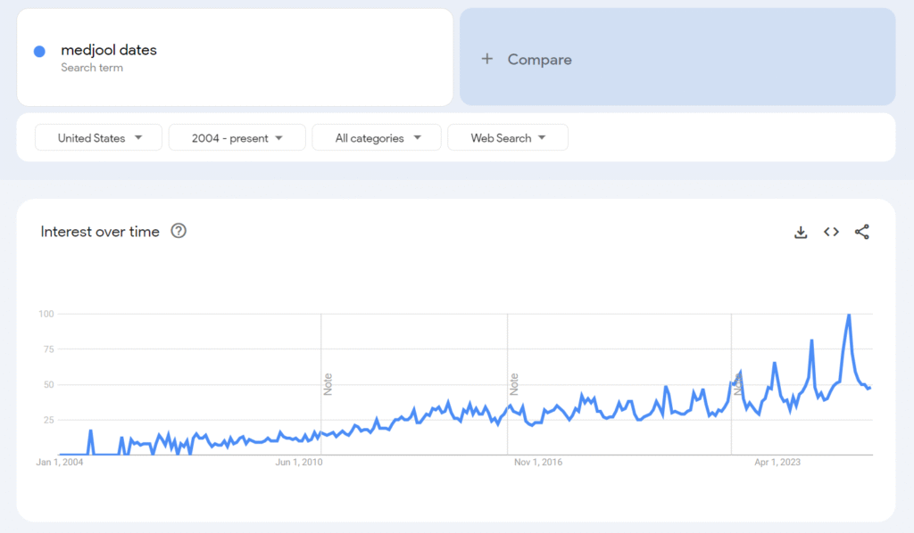 Popyt nie kończy się na ciekawości: w 52 tygodniach do 13 lipca sprzedaż detaliczna daktyli w USA skoczyła o około 30 proc. rok do roku, a cały 2024 r. przyniósł niemal 19-proc. wzrost wobec poprzedniego roku na podstawie danych Circana. Dla rolników, przetwórców i marek to sygnał, że mamy do czynienia z trendem, w który opłaca się inwestować.