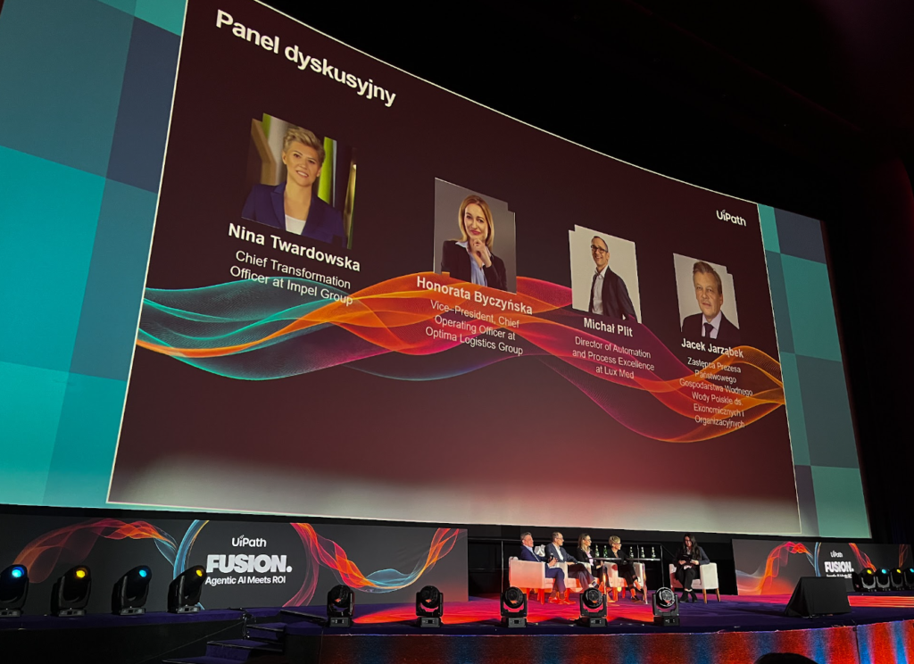 Panel dyskusyjny z udziałem Niny Twardowskiej (CTO, Impel Group), Honoraty Byczyńskiej (COO, Optima Logistics Group), Michała Plita (Director of Automation, Lux Med) i Jacka Jarząbka (Wody Polskie) pokazał, że automatyzacja działa tylko wtedy, gdy jest zakorzeniona w procesach i zaakceptowana przez ludzi.